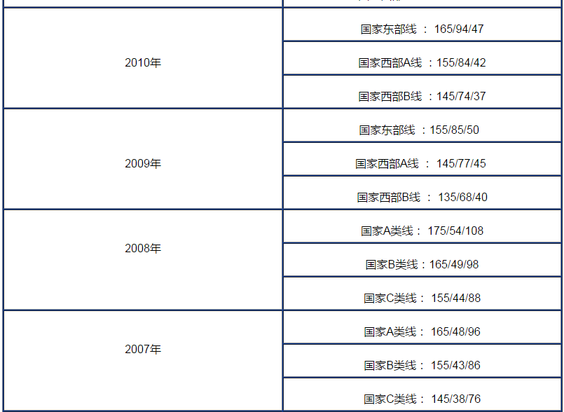 由于全國各地的經(jīng)濟、文化和發(fā)達程度的不同,國家對MBA 錄取分?jǐn)?shù)線的制定分了等級。