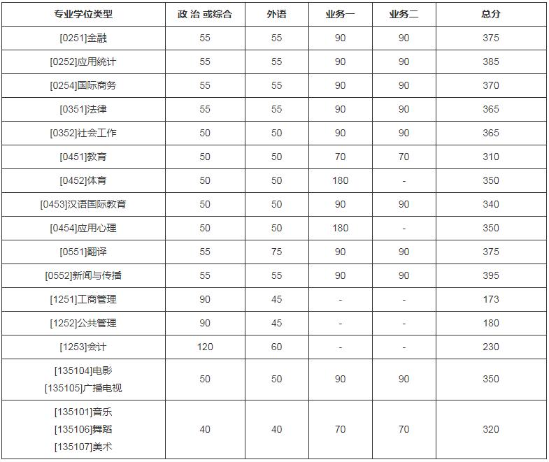 二、學(xué)校復(fù)試基本分?jǐn)?shù)線(專業(yè)學(xué)位類)