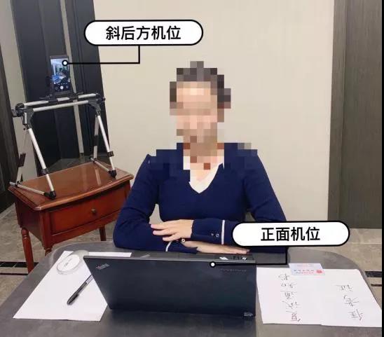 考生要雙機(jī)位模式參加復(fù)試,即需要注冊(cè)申請(qǐng)兩個(gè)獨(dú)立賬號(hào)同時(shí)進(jìn)入候考室或復(fù)試室,分別登陸兩部帶攝像頭的設(shè)備,手機(jī)或電腦均可。一臺(tái)設(shè)備從正面拍攝,另一臺(tái)設(shè)備從考生側(cè)后方拍攝??忌藘膳_(tái)設(shè)備開(kāi)啟攝像頭,一臺(tái)設(shè)備將攝像頭對(duì)準(zhǔn)考生本人,另一臺(tái)設(shè)備攝像頭從考生后方成45°拍攝(后方拍攝的設(shè)備須靜麥和關(guān)閉音頻,防止回音影響復(fù)試),并保證考生端考試屏幕能清晰地被復(fù)試專(zhuān)家組看到。