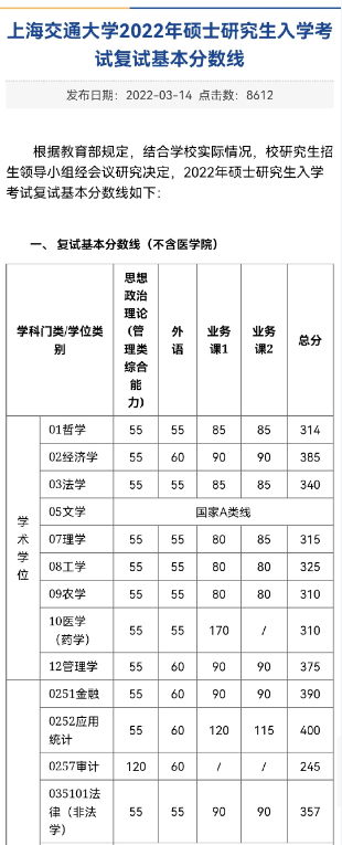 2022年上海交通大學研究生復試分數線已公布院校動態(tài)