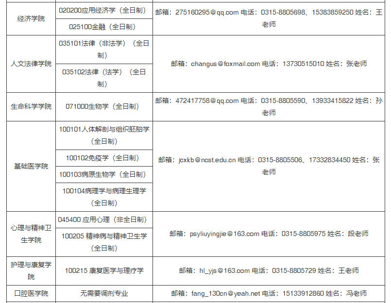 有關(guān)調(diào)劑及復(fù)試錄取政策等咨詢請致電研招辦:0315-8816006、8816008