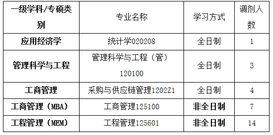 我校在4月6日調劑系統(tǒng)開放后開始進行調劑錄取,還有如下學科有調劑名額(理論經濟學、應用經濟學學術學位另行通知),歡迎有意愿的考生申報。