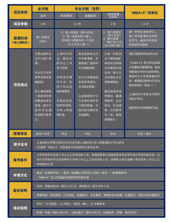 上財(cái)MBA有哪些班型?分別有什么特色?