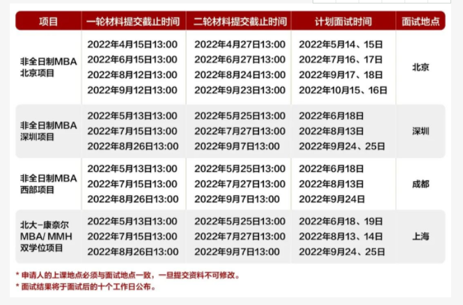 2· 2023年非全日制MBA深圳、西部項(xiàng)目、北大-康奈爾MBA/MMH雙學(xué)位項(xiàng)目的一輪材料提交最終截止時(shí)間為2022年8月26日13:00,二輪材料提交最終截止時(shí)間為2022年9月7日13:00。