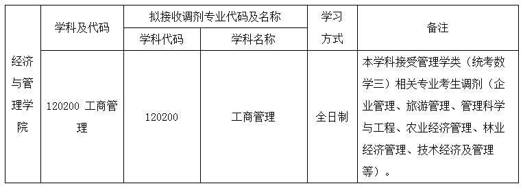 經(jīng)濟(jì)與管理學(xué)院2022年碩士研究生招生工商管理學(xué)科接收調(diào)劑考生,現(xiàn)根據(jù)學(xué)校調(diào)劑公告文件精神,在“經(jīng)濟(jì)與管理學(xué)院2022年碩士研究生復(fù)試錄取工作方案”的基礎(chǔ)上,就調(diào)劑相關(guān)事項(xiàng)公告如下: