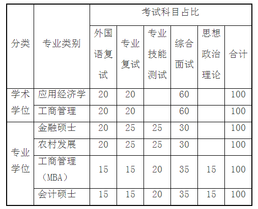 2.復(fù)試成績(jī)中各項(xiàng)所占百分比