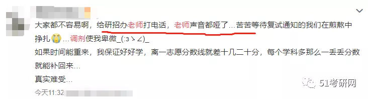 從開始查分?jǐn)?shù)那一刻起內(nèi)心就不斷承受這煎熬,等國家線,等復(fù)試分?jǐn)?shù)線,等復(fù)試名單,等調(diào)劑,等調(diào)劑通知······到了這時候你發(fā)現(xiàn),原來真正難的不是考研的過程,而是在無盡等待過程中的無奈和無能為力。從一志愿報考名校到現(xiàn)在調(diào)劑到B區(qū)普通二本也被拒絕,這種心理的落差,怎會不難受?