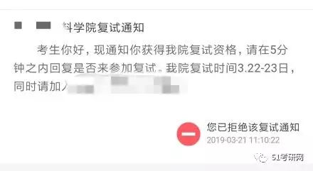 “請在5分鐘內(nèi)回復(fù)是否來參加復(fù)試”···